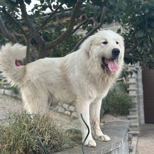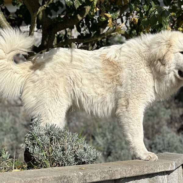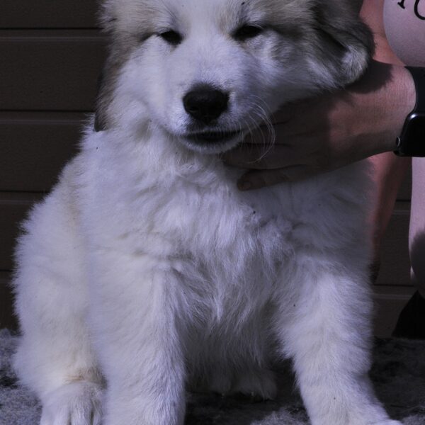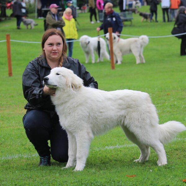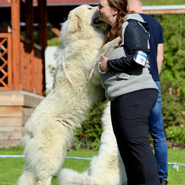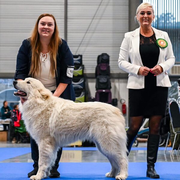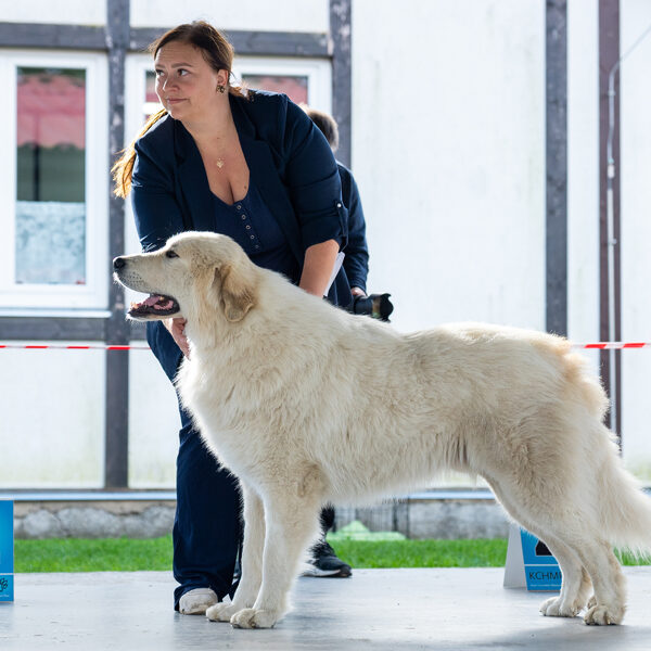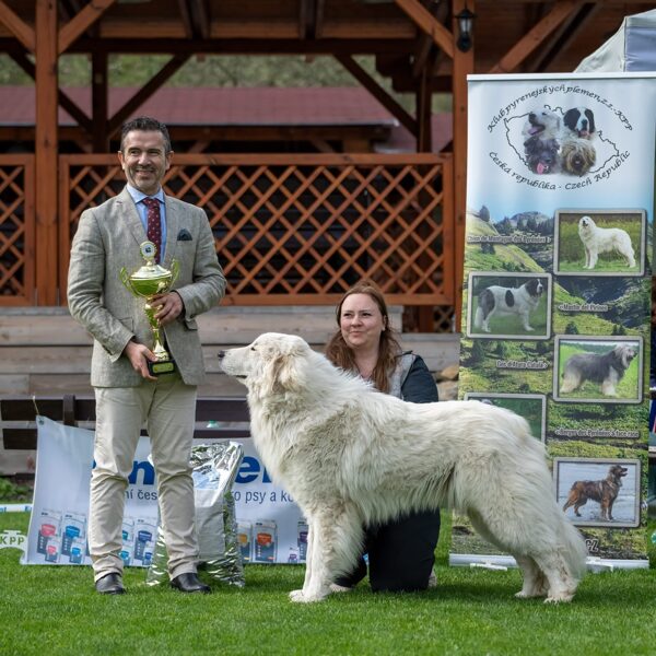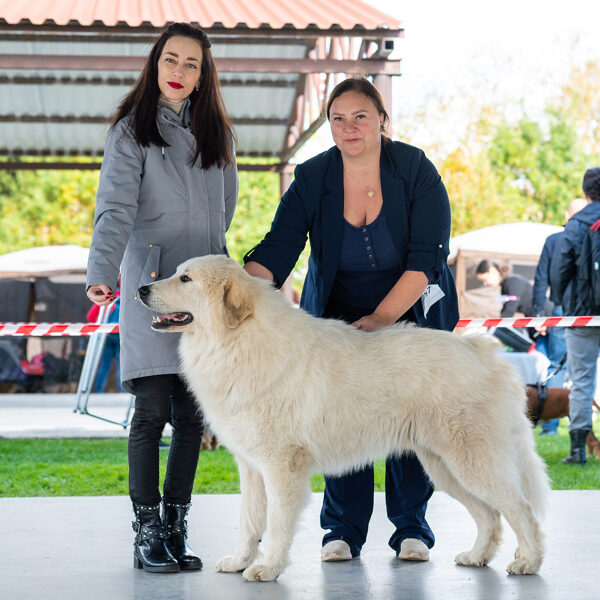 6 a půl měsíce, stále celkově ve vývoji, správná silueta, dobré proporce, vyvíjející se lebka, výborný tvar/barva/umístnění očí, výborná celková pigmentace, výborný pyrenejský výraz, správně nasazené a tvarované uši, musí nabrat šířku hrudníku, milá povaha, správná textura a struktura srsti, správné úhlení předních končetin, správná linie hřbetu, výborné úhlení pánevních končetin, dobře zaúhlený ocas, správná délka ocasu, správný pohyb z profilu, ale musí si zvyknout na výstavní kruh.