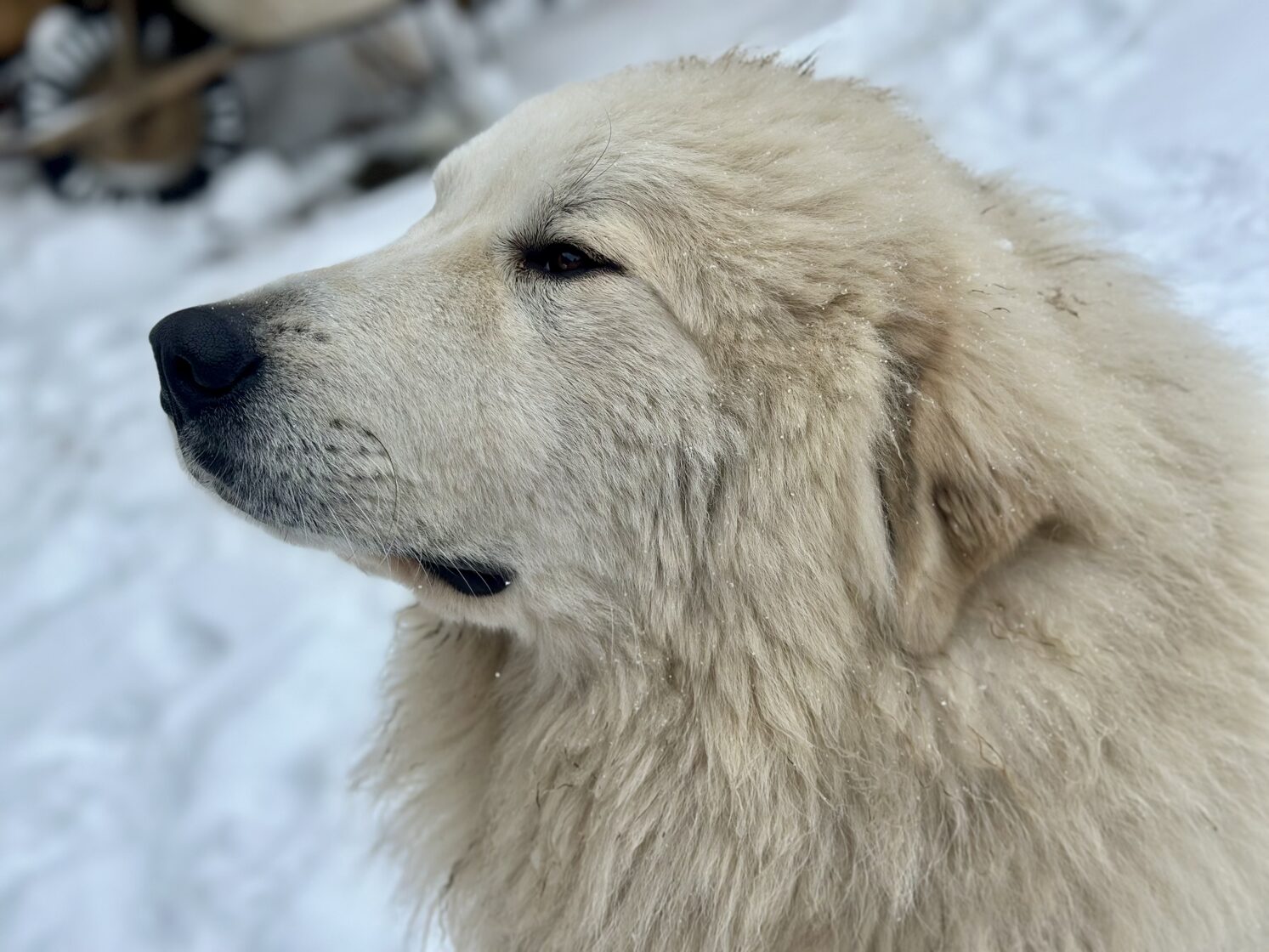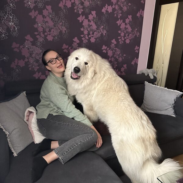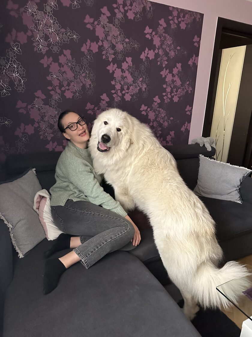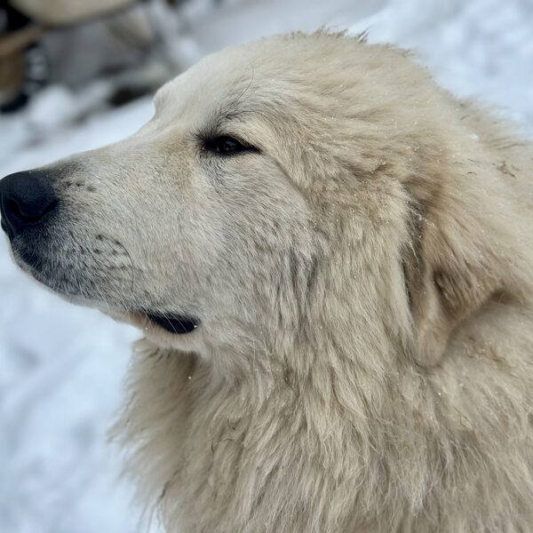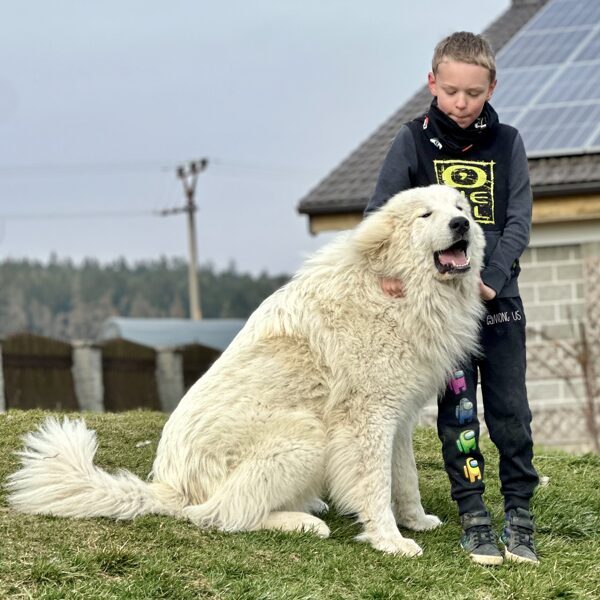 6 a půl měsíce, stále celkově ve vývoji, správná silueta, dobré proporce, vyvíjející se lebka, výborný tvar/barva/umístnění očí, výborná celková pigmentace, výborný pyrenejský výraz, správně nasazené a tvarované uši, musí nabrat šířku hrudníku, milá povaha, správná textura a struktura srsti, správné úhlení předních končetin, správná linie hřbetu, výborné úhlení pánevních končetin, dobře zaúhlený ocas, správná délka ocasu, správný pohyb z profilu, ale musí si zvyknout na výstavní kruh.